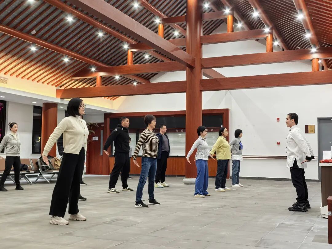 泗泾镇社区卫生服务中心医生在指导市民练内功。受访者供图