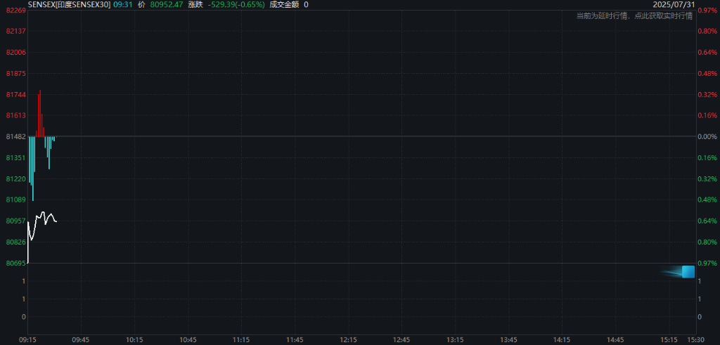 报道称,美印谈判现麻烦迹象,美方希望印度进一步开放农业市场。但农业是印度总理莫迪的 “政治敏感” 领域,其或难让步。虽尚无具体行业关税税率信息,但印度医药、电子产品、纺织服装、宝石珠宝及炼油板块或受显著冲击。印度 SENSEX 30 指数低开近 1% 后小幅反弹。个股方面,印度药企瑞迪博士开盘低开 1.36%,炼油行业的印度石油开盘股价下挫超 3%。